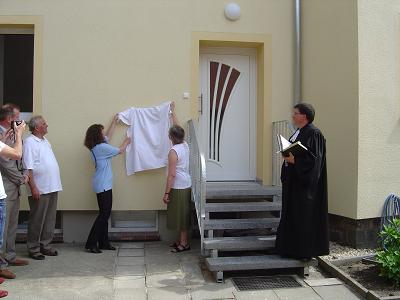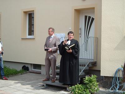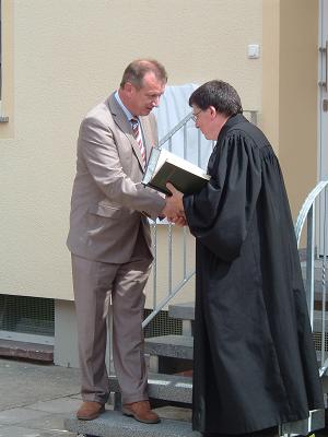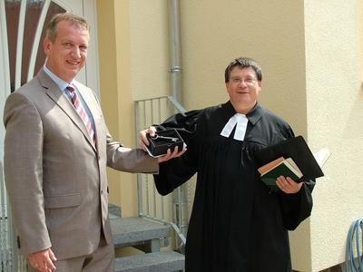 Projektleiter Jürgen Heidan überreichte Pfarrer Jürgen Ouart den Schlüssel für das Gebäude, das «künftig zu einer Begegnungsstätte für die Öffentlichkeit» werden soll.