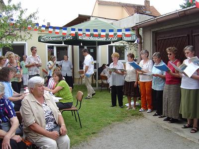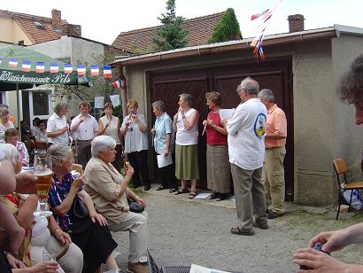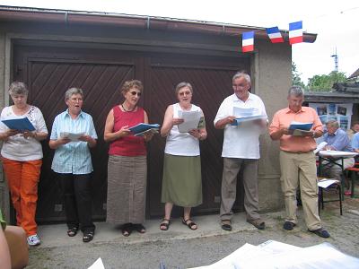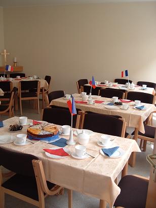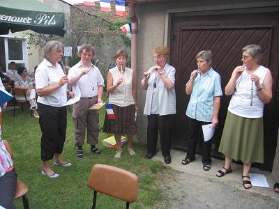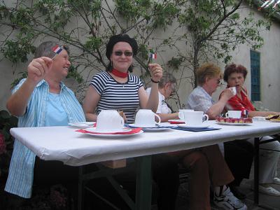 haben. Im Pfarrgarten baumelten Papierfähnchen in den französischen Nationalfarben, es gab Baguette, Rotwein und Kaffee.